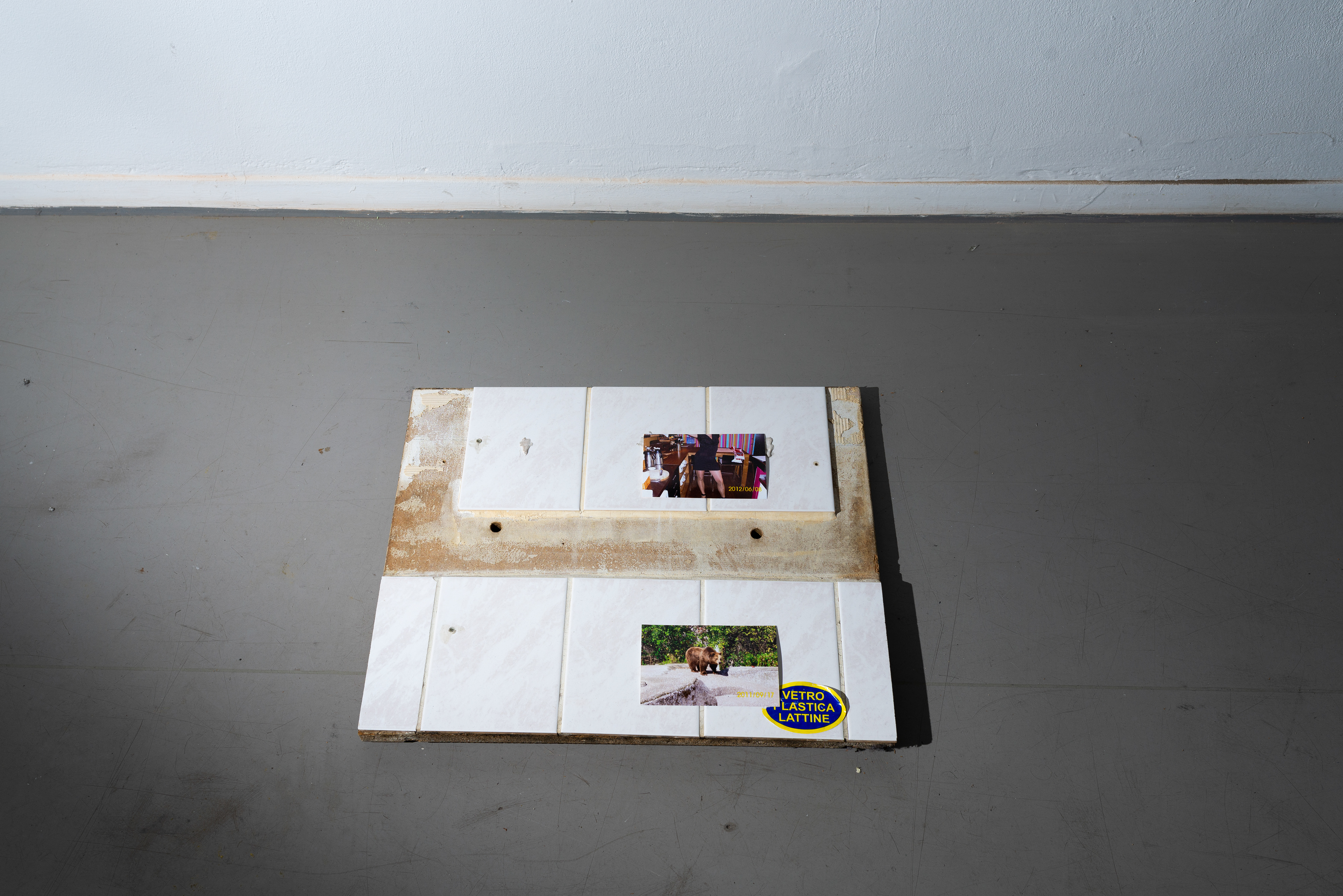 Two-Part Installation on Other People’s Memories. The work originated from the acquisition of a private archive of photographs from the 2000s.Through editing and arranging the photographs alongside objects, new meanings are created. The boundary between truth and fiction becomes blurred.